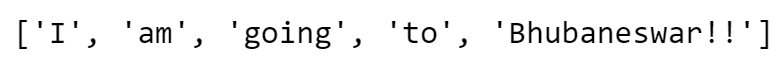from nltk.tokenize import word_tokenize, sent_tokenize sent1 = "I am going to Bhubaneswar!!"