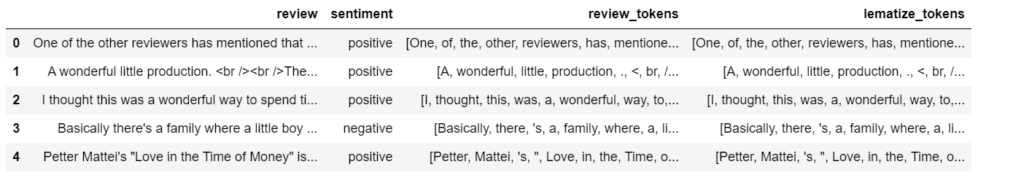 df['lematize_tokens'] = df['review'].apply(lambda x: [y.lemma_ for y in nlp(x)])