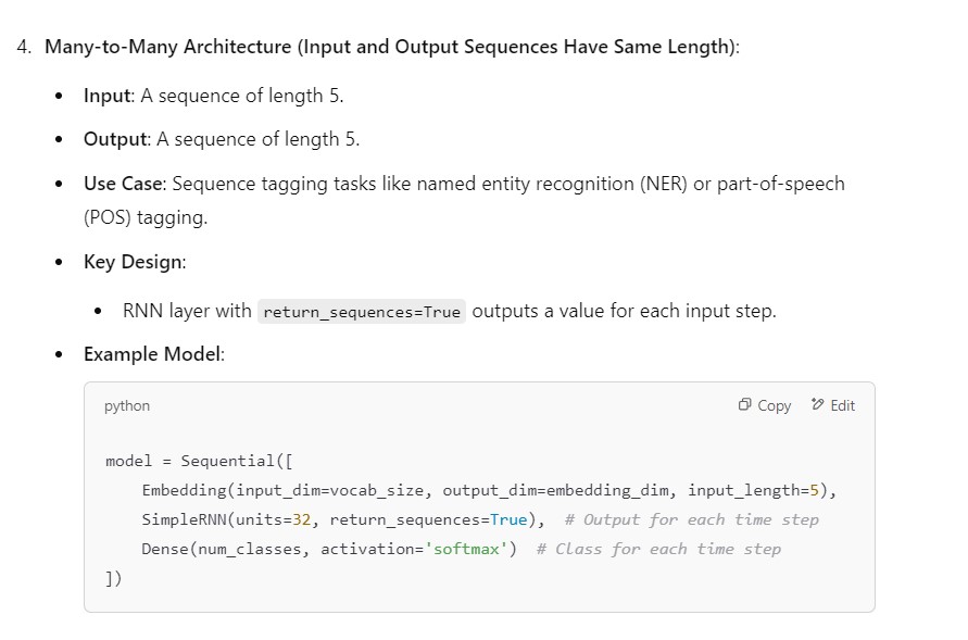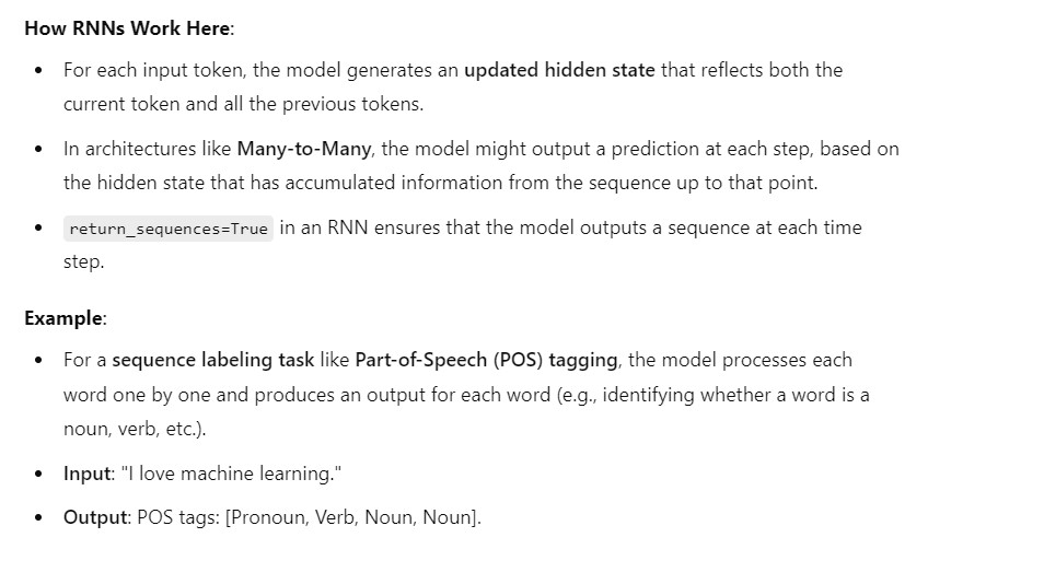 model.add(tf.keras.layers.SimpleRNN(128, return_sequences=True))  # Many-to-Many RNN