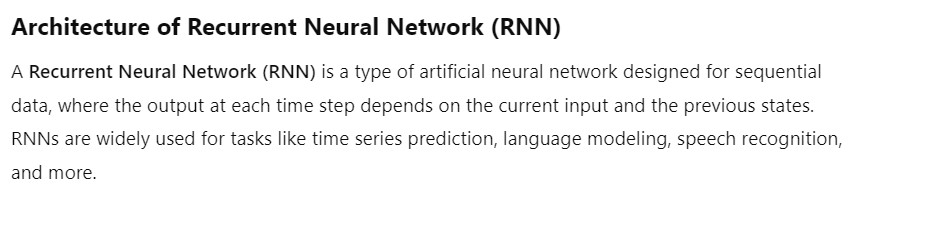 7. what is the difference Architecture of Recurrent Neural Network (RNN)