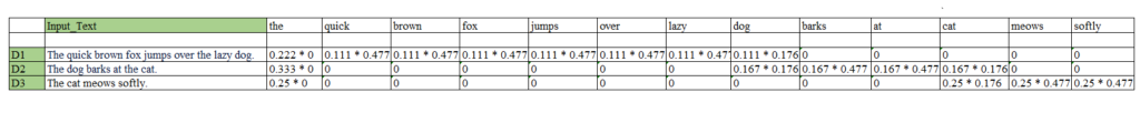Step-4: Calculate the TF-IDF values for each word in each document.