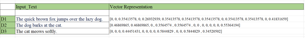 Sparsity: The TF-IDF vectors are typically sparse, meaning that most elements are zero, which can be computationally efficient for certain machine learning algorithms.