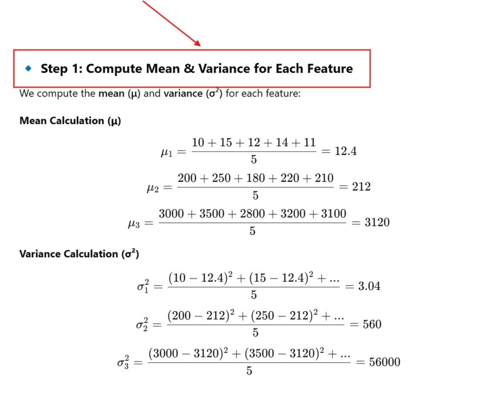 Step – 1: Compute The Mean & Variance Of Each Feaature