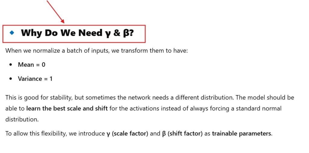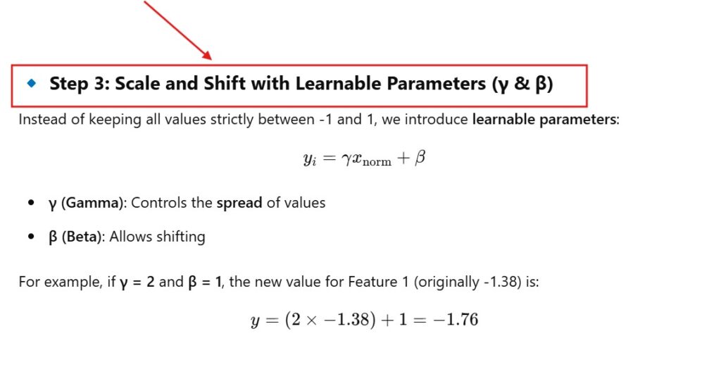 Step – 3: Scale and Shift with Learnable Parameters (γ & β)