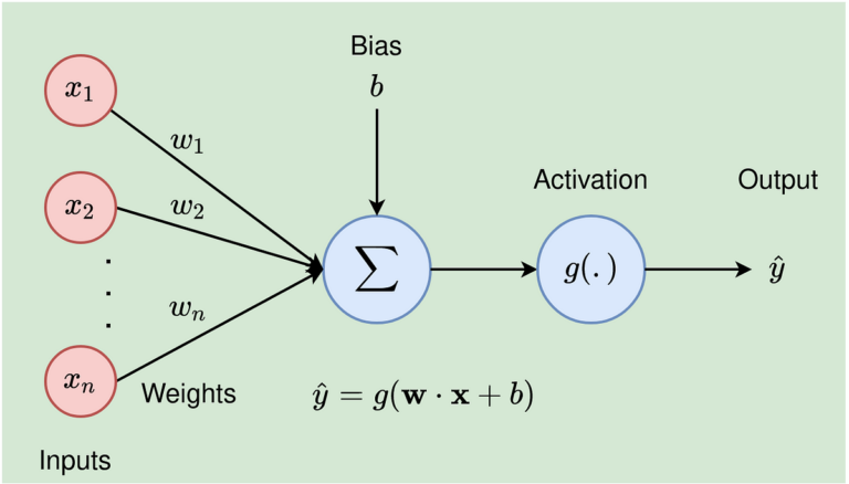 - Each neuron applies an activation function to the weighted sum of its inputs and passes the result to the next layer.