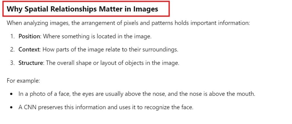 • In the context of images and visual data, it describes how different parts of the image (like pixels, shapes, or objects) are positioned, connected, or interact with each other.