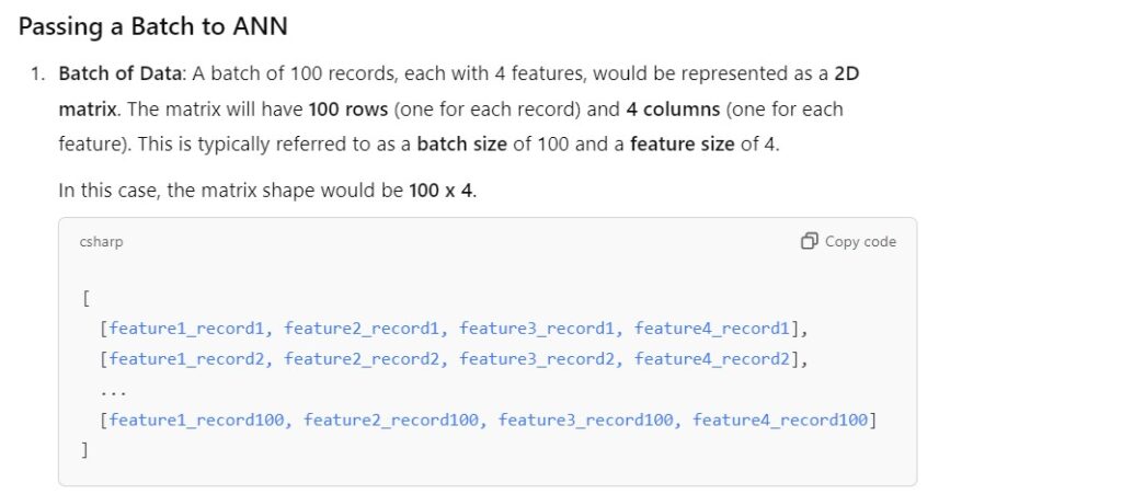 • If you pass also a matrix of size 5 * 4 it will be considered as 5 records and 4 number of features.