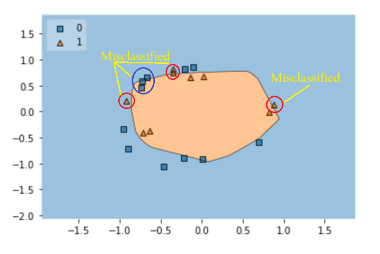 - Here you can see that your model has misclassified some of the data points.