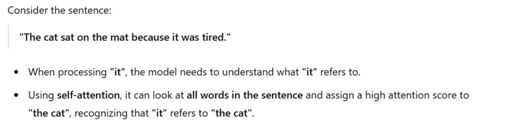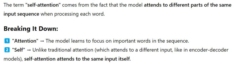 - Why it is called Self because we are performing the attention technique to the same input sentence.