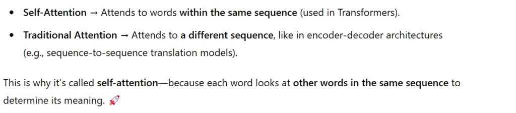 - The same operation mathematical we are performing in case of the Self Attention technique.