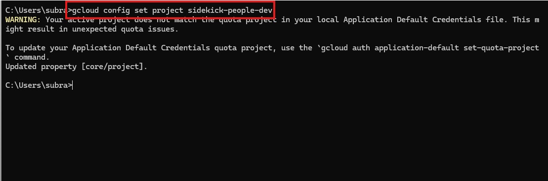 gcloud config set project sidekick-people-dev
