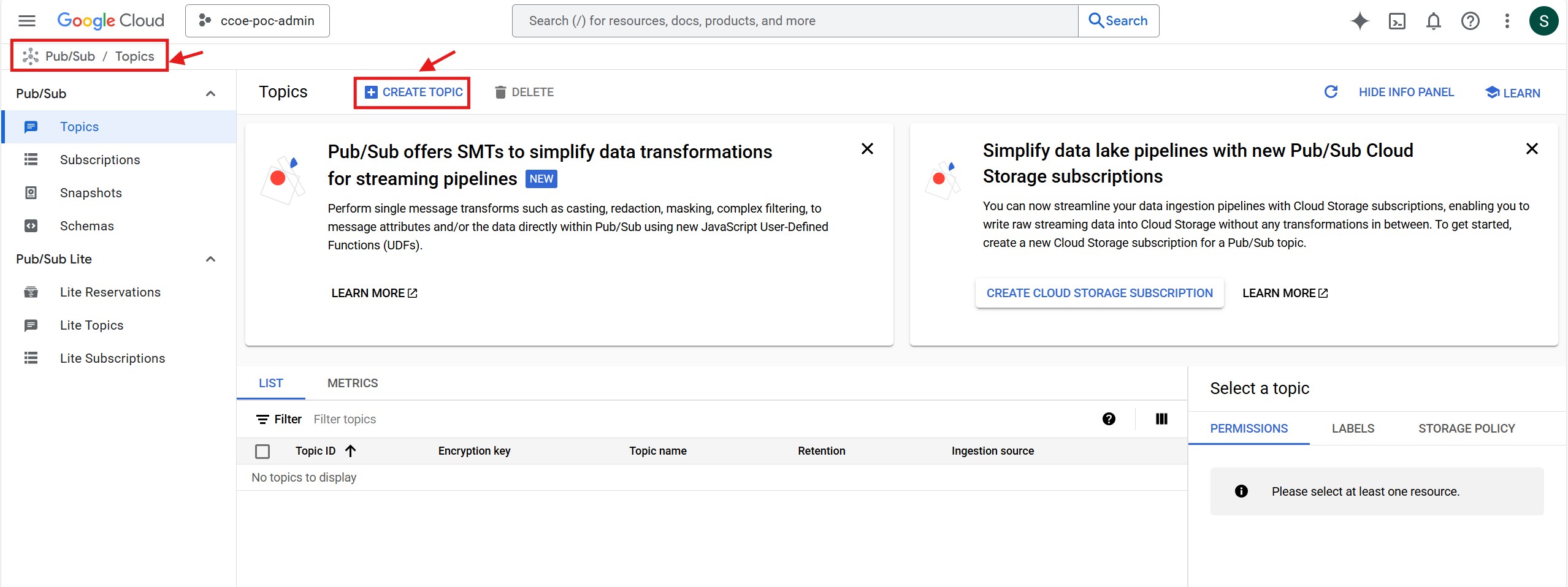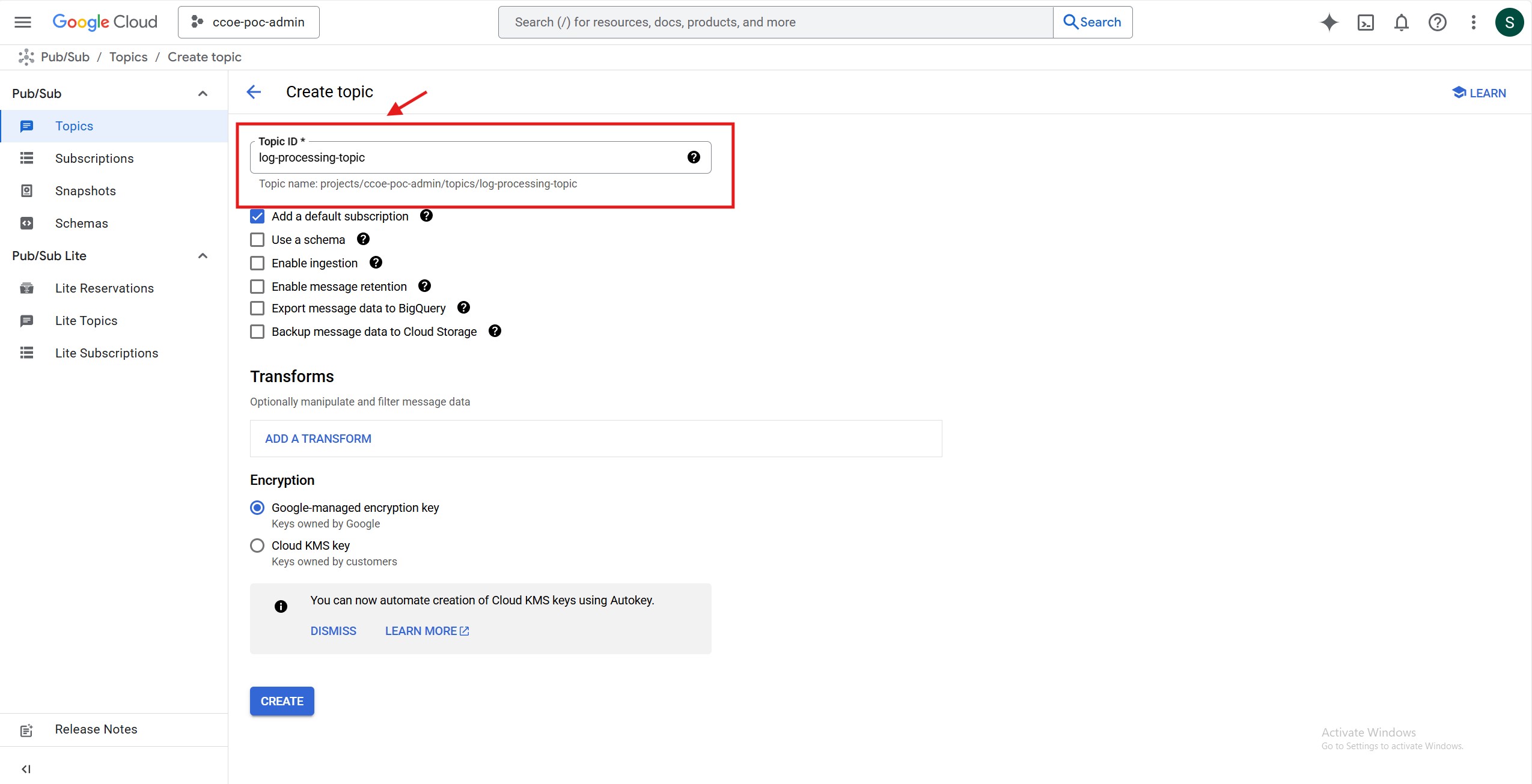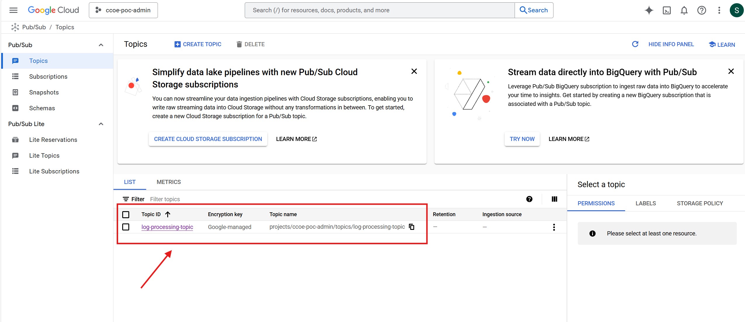 Step-1: Create A Pub/Sub Topic In The Destination Project
