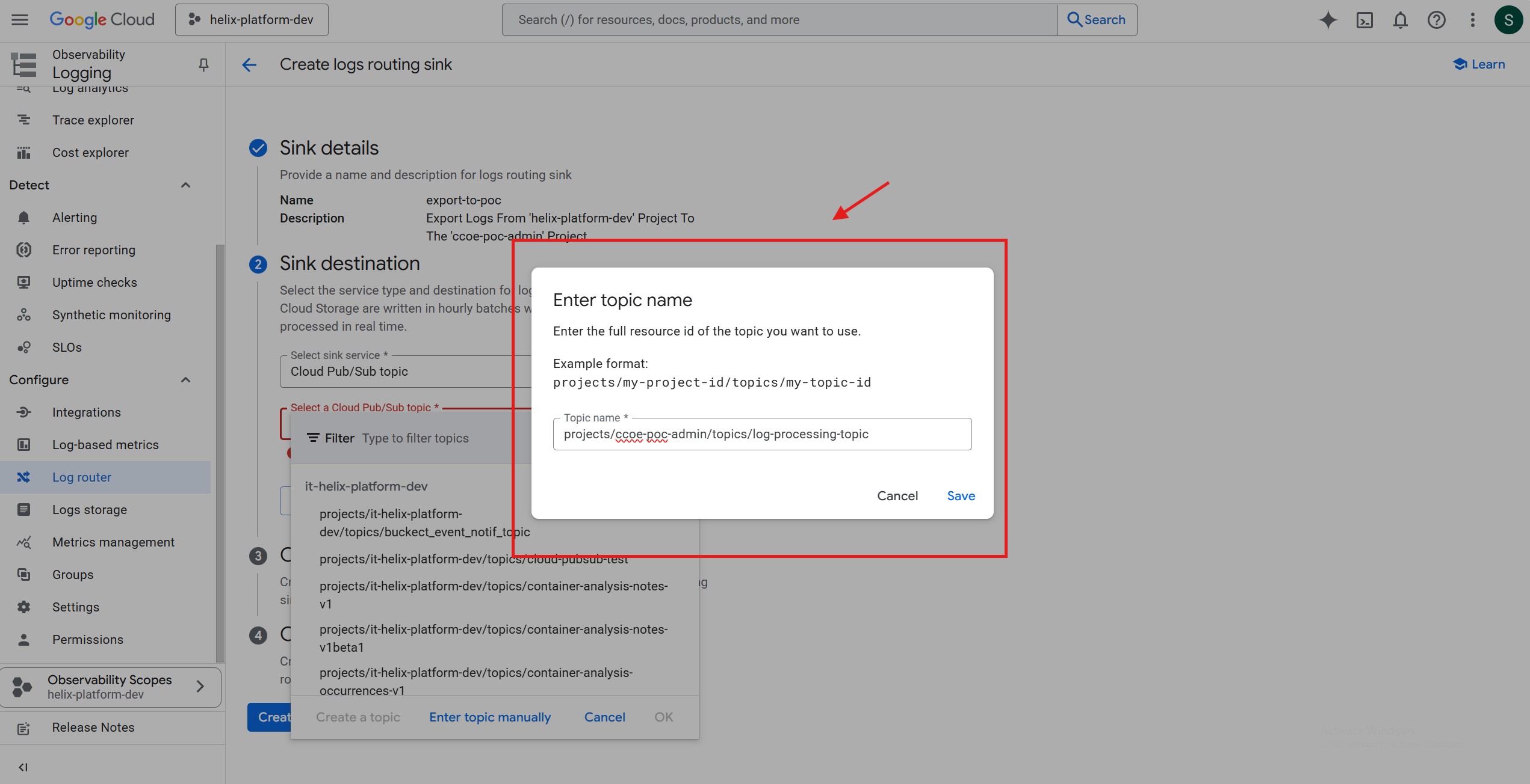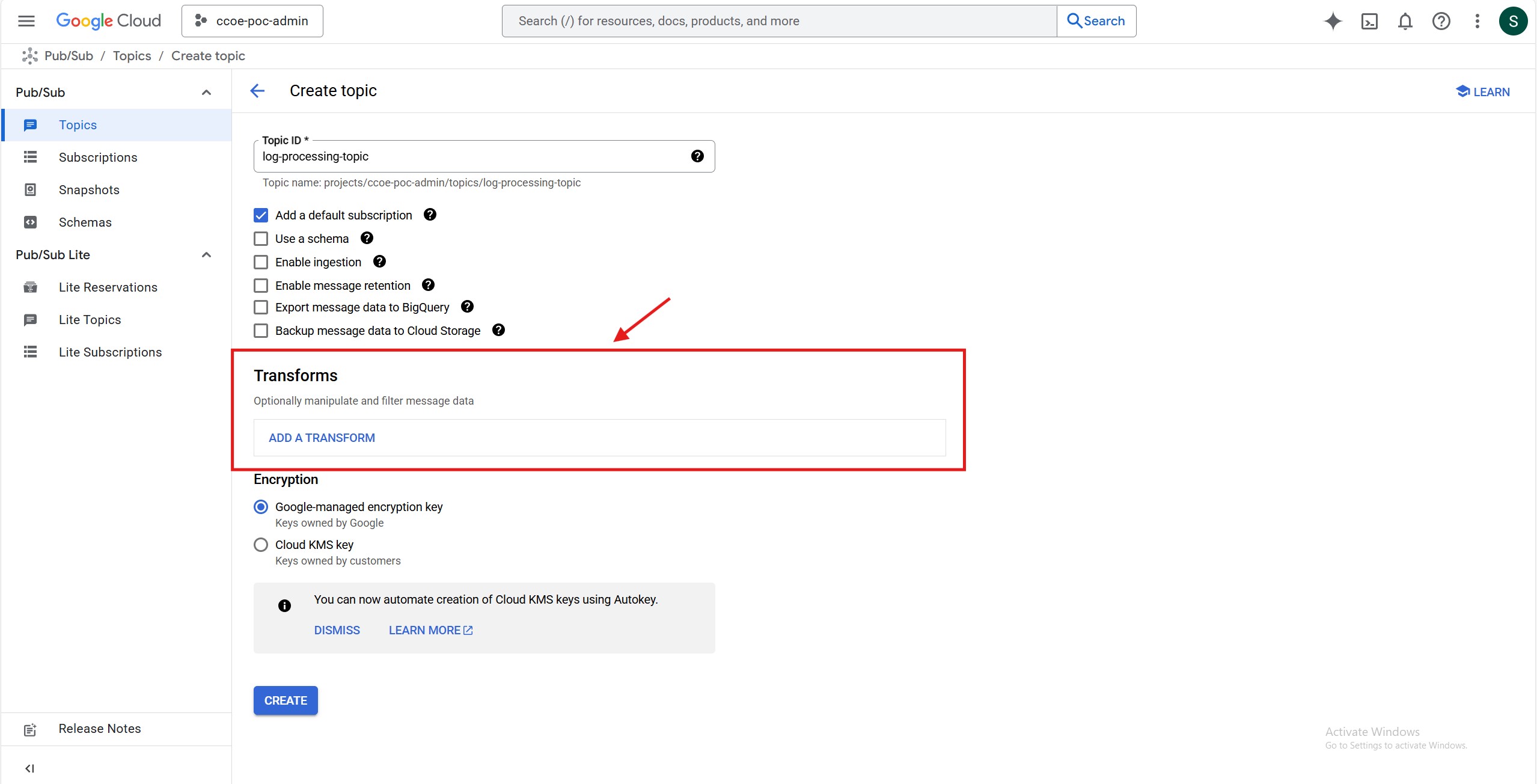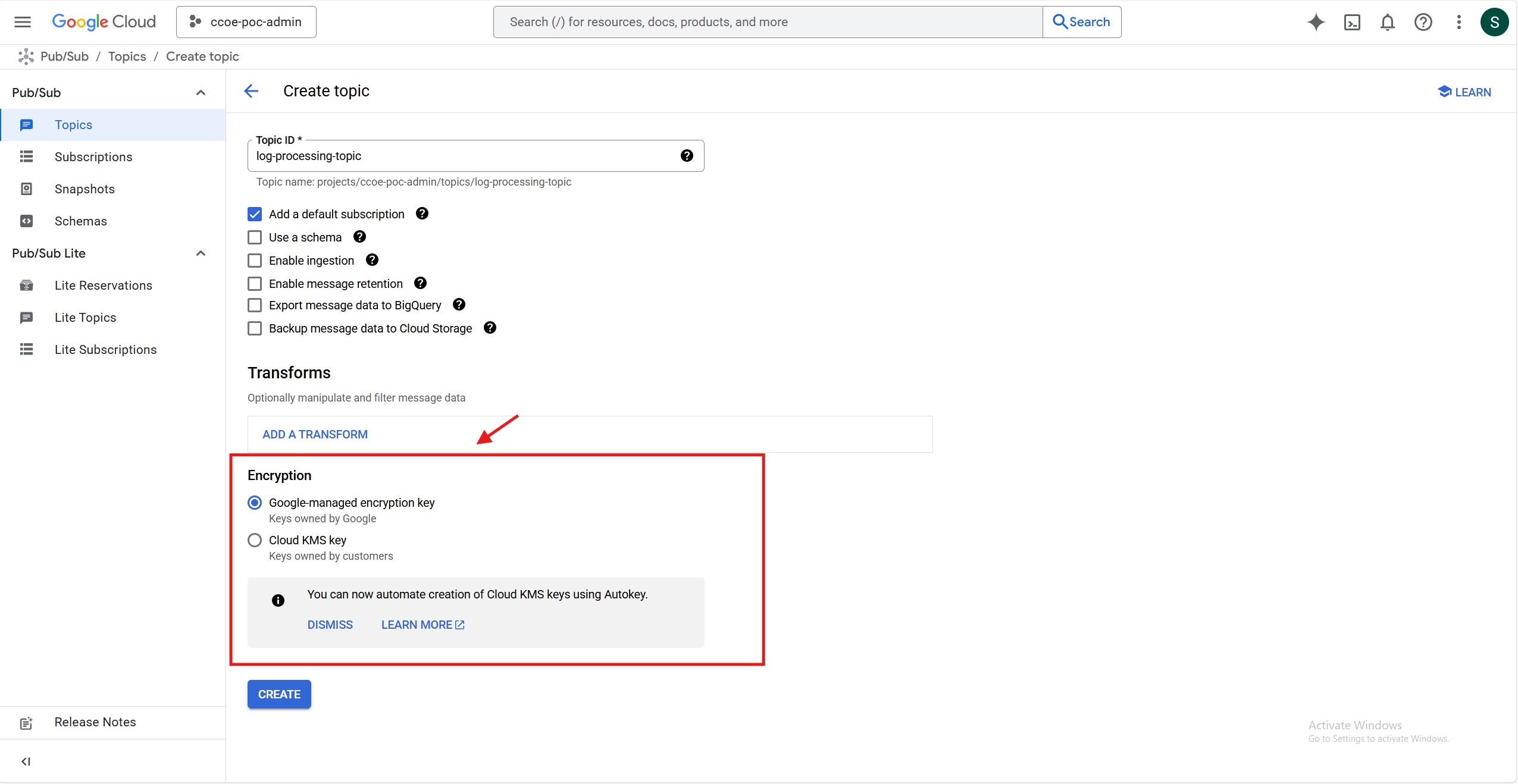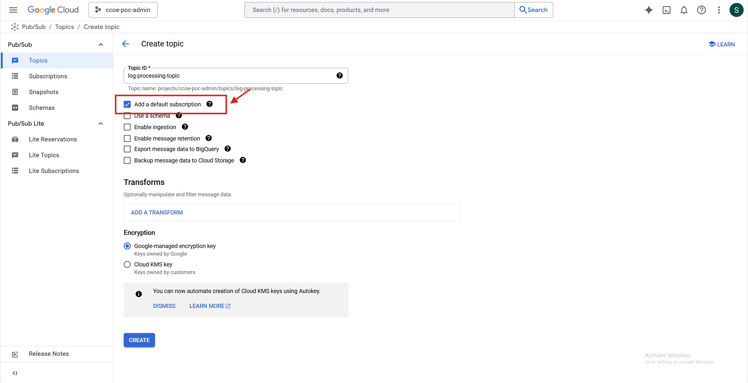 Step-1: Create A Pub/Sub Topic In The Destination Project