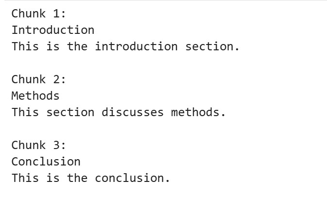 print(f"Chunk {i+1}:\n{chunk}\n")