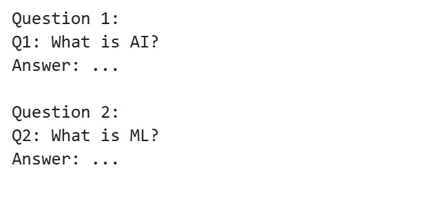 data = "Q1: What is AI?\nAnswer: ...=== END ===Q2: What is ML?\nAnswer: ..."