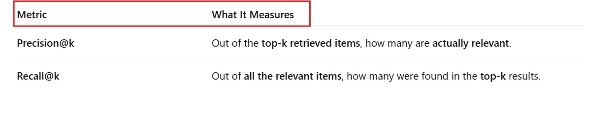 - Difference In Precision@k & Recall@k.