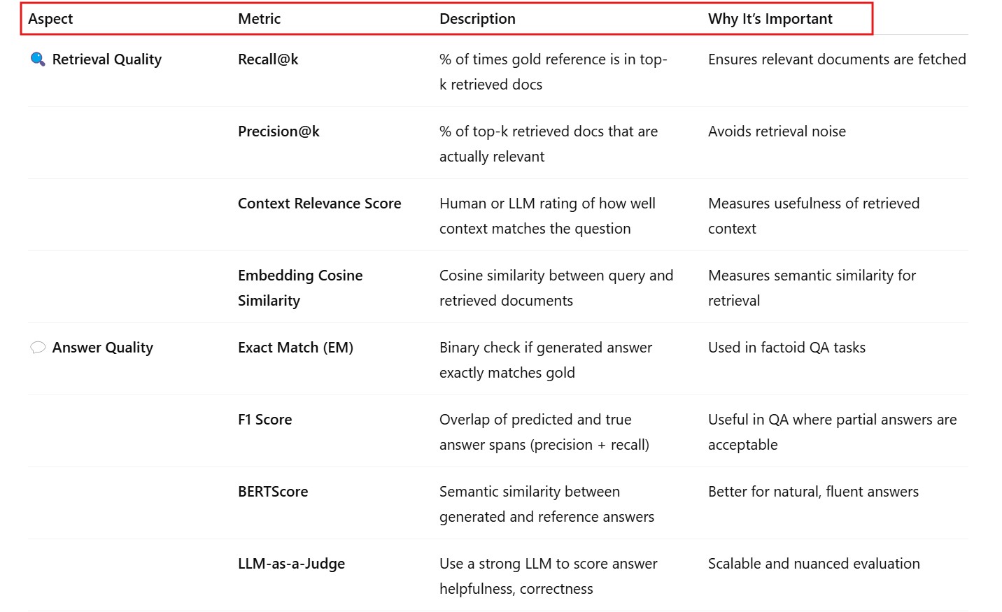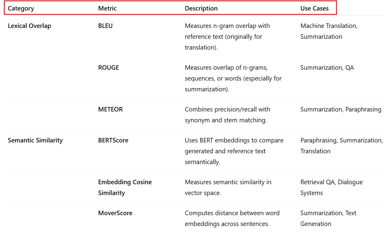 Evaluation Metrics Used In RAG.