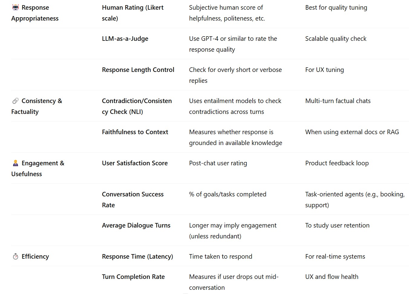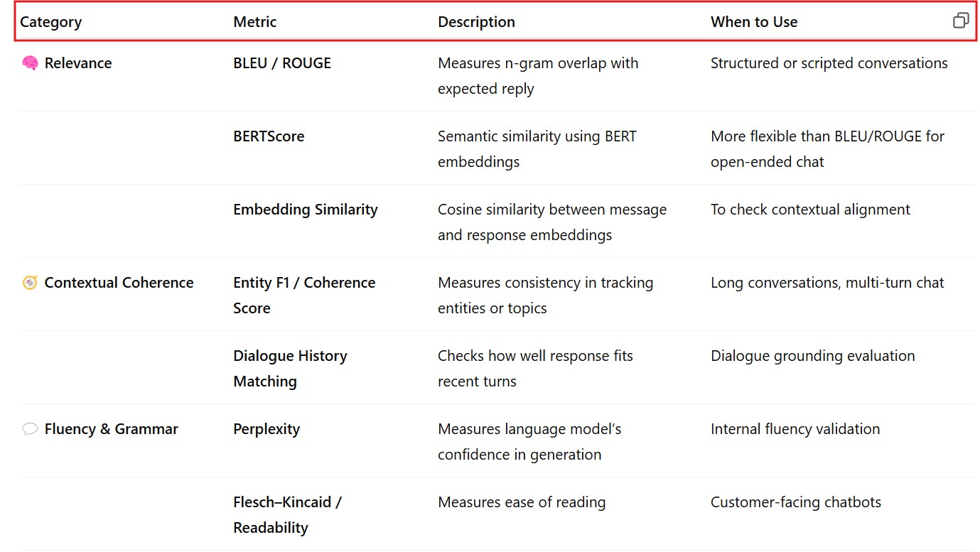 Evaluation Metrics Used In Conversational Agents / Chatbots