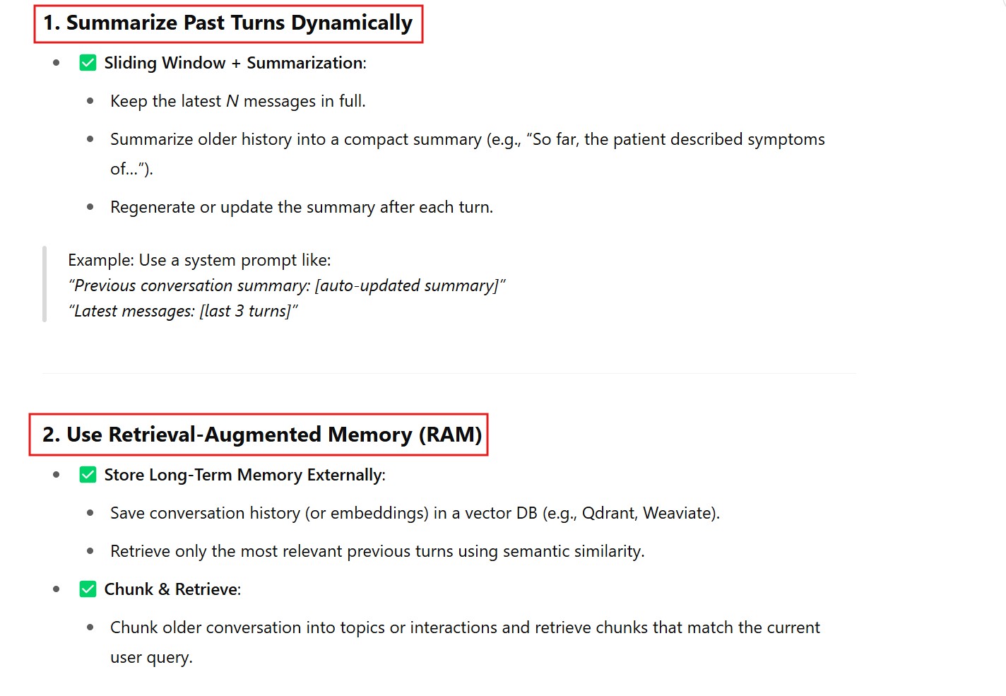 • Your app supports chat, but after several turns the context window overflows. How do you handle this?