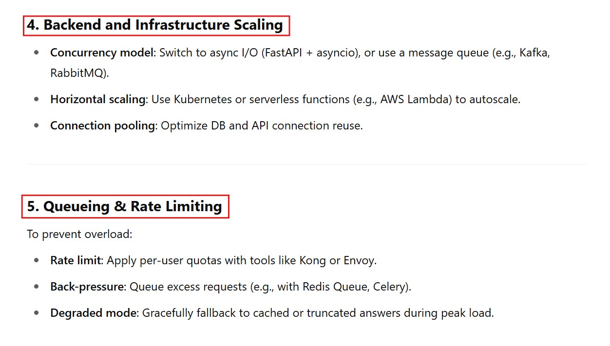 • Your RAG app works fine with 10 users but lags with 1000 concurrent users. What do you do?