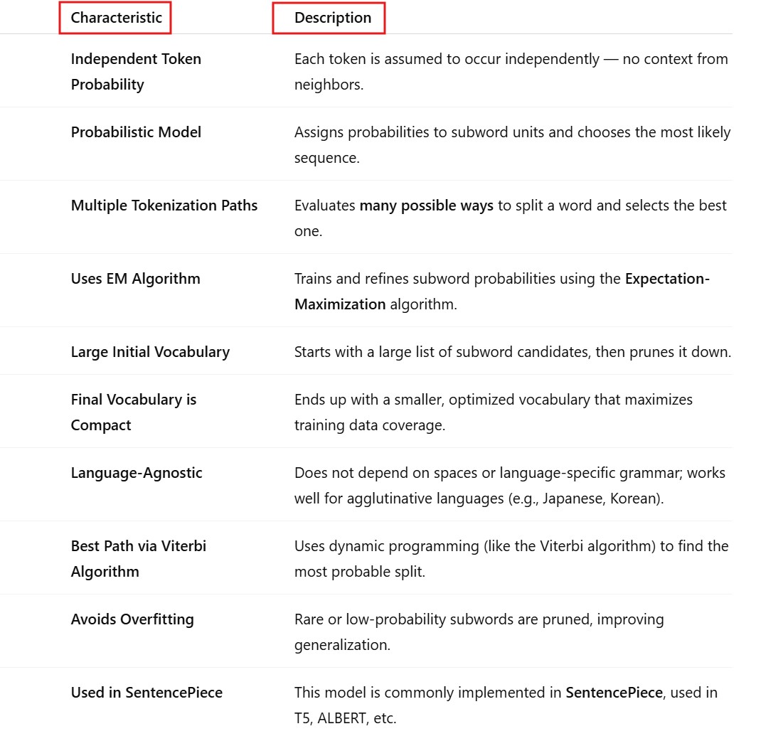 GenAI – Unigram Language Model Tokenization