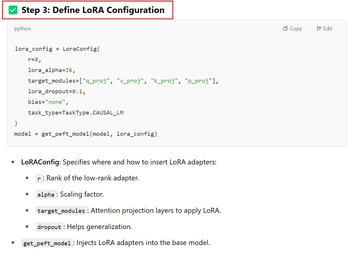 from peft import get_peft_model, LoraConfig, TaskType, prepare_model_for_kbit_training