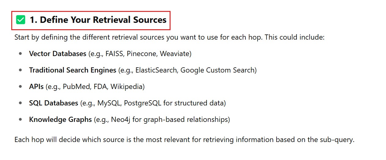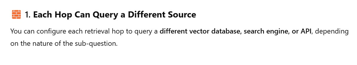 How to configure each retrieval hop to query a different vector database, search engine, or API, depending on the nature of the sub-question ?