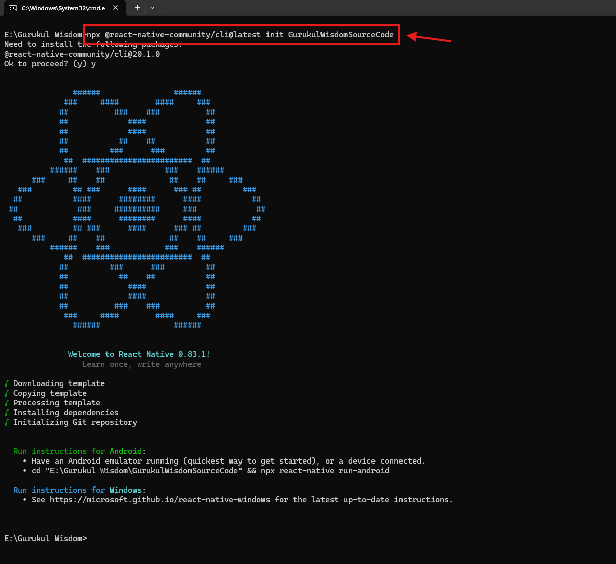 npx @react-native-community/cli@latest init GurukulWisdomSourceCode