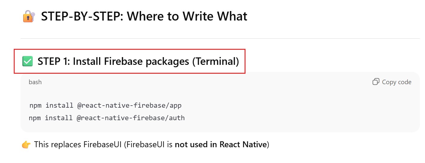 npm install @react-native-firebase/app npm install @react-native-firebase/auth npm uninstall @react-native-firebase/firestore