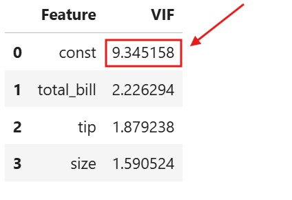 vif["VIF"] = [variance_inflation_factor(X_const.values, i) for i in range(X_const.shape[1])]