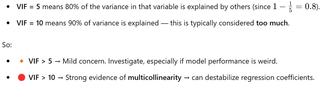 • But if X1 and X2 are, say, 90% correlated, then removing X2 doesn’t hurt the model much — because X1 is doing almost the same job.