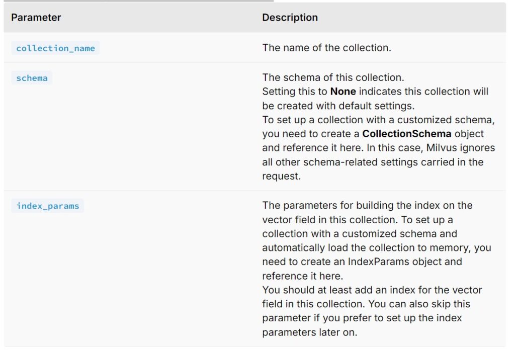 • Instead of letting Milvus decide almost everything for your collection, you can determine the schema and index parameters of the collection on your own.