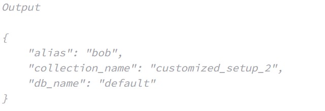 • To reassign aliases to other collections, use the alter_alias() method, specifying the collection name and the alias.
