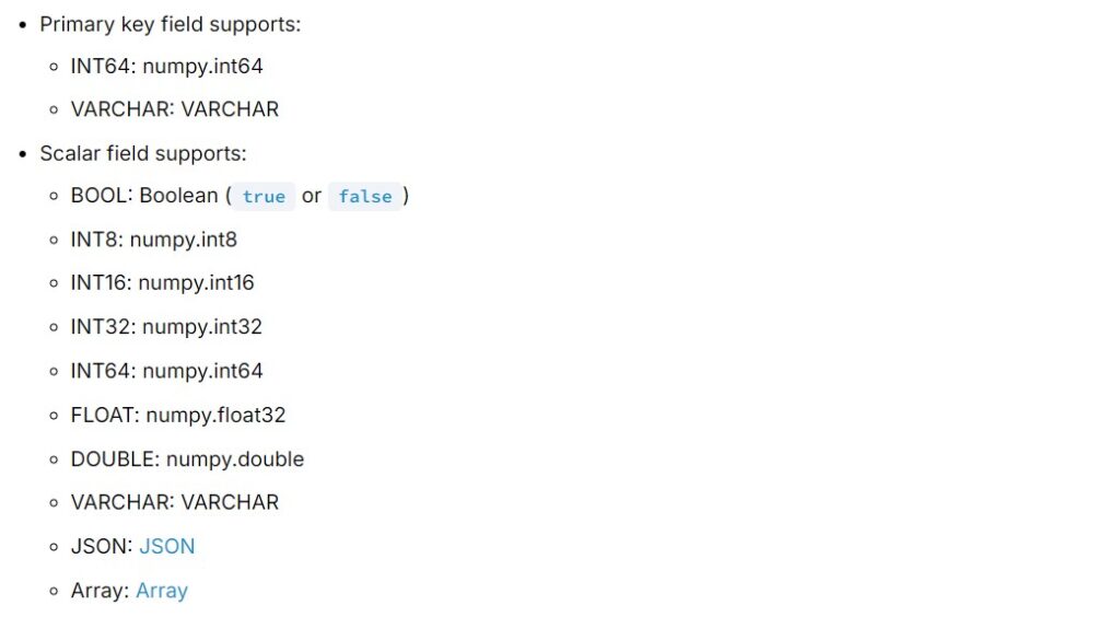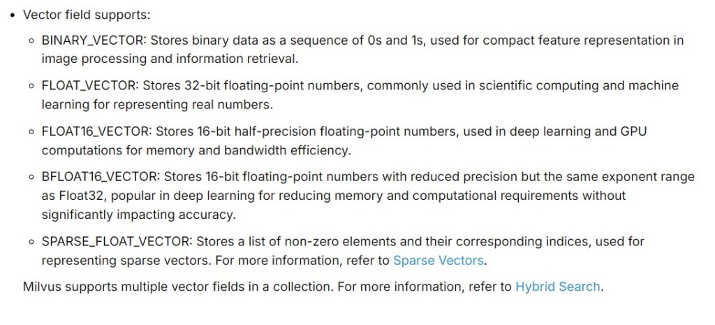embedding_field = FieldSchema(name="embedding", dtype=DataType.FLOAT_VECTOR, dim=128, description="vector")