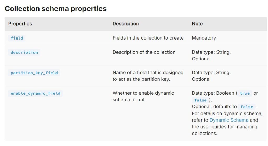 - It is the first thing you need to define before defining a collection schema and managing collections.
