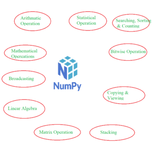 - It is used in mathematical, logical, shape manipulation, sorting, selecting, I/O, discrete Fourier transforms, basic linear algebra, basic statistical operations, random simulation and much more.