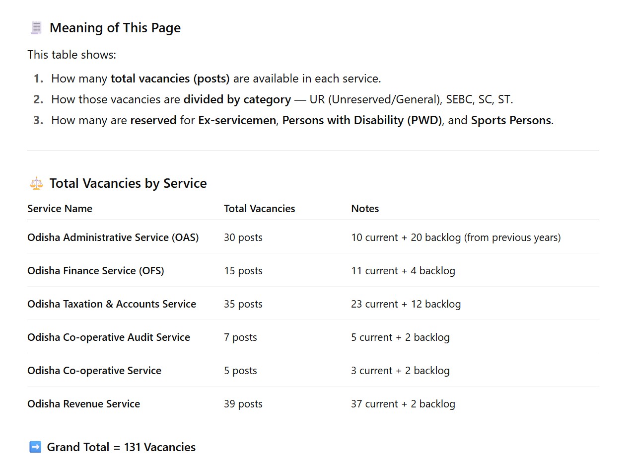 2. Position of Vacancies and Reservation.
