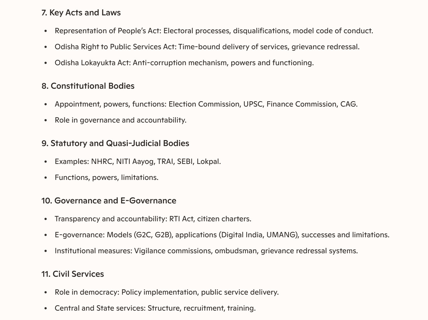 OPSC – Prelim Paper – 1 : Indian Polity Syllabus