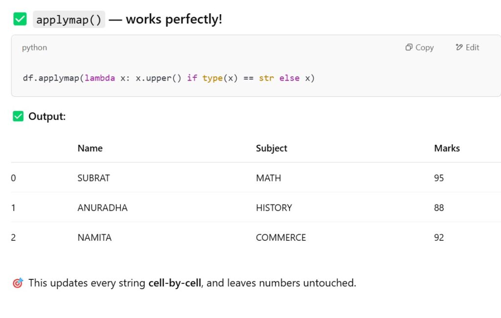 1. Syntax ‘applymap( )’ Method In Pandas.