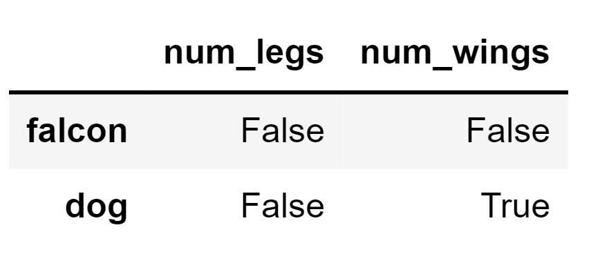 df = pd.DataFrame({'num_legs': [2, 4], 'num_wings': [2, 0]},