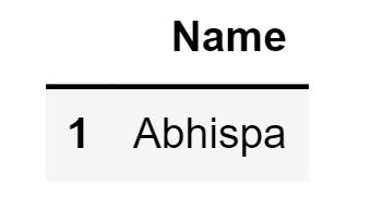 student_object.loc[[1],['Name']] Output: