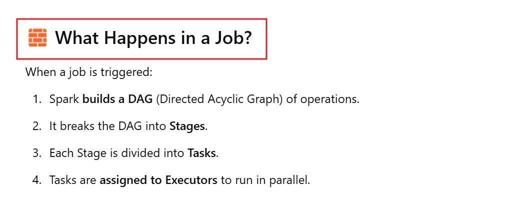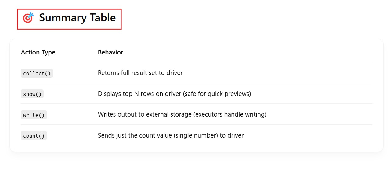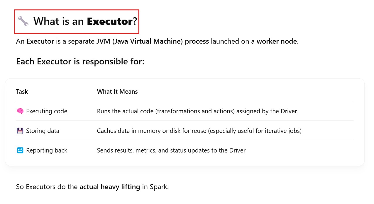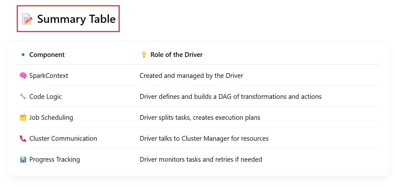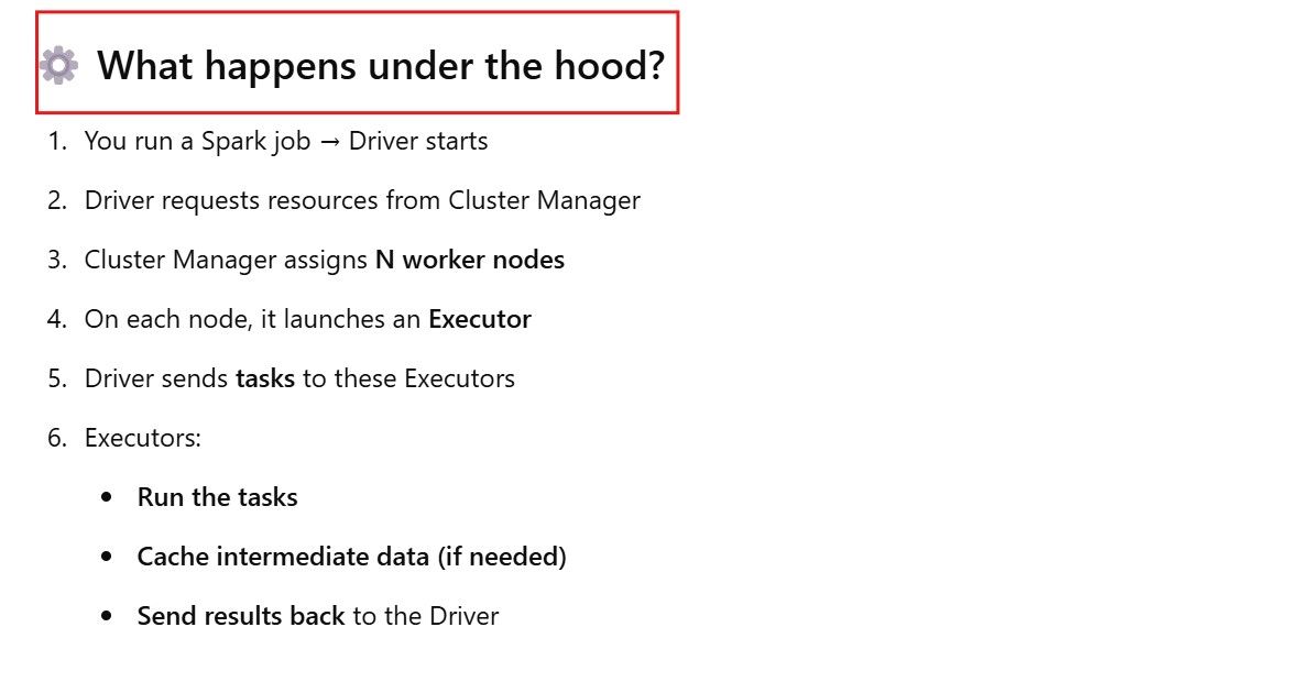 - The actual processing is done by Workers, but Driver gives the instructions.