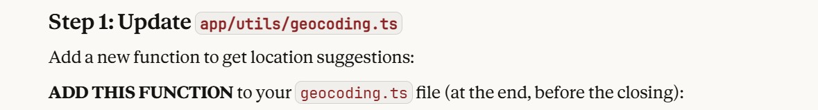 import { getCoordinates, getLocationSuggestions } from './utils/geocoding'; const [locationSuggestions, setLocationSuggestions] = useState<Array<{