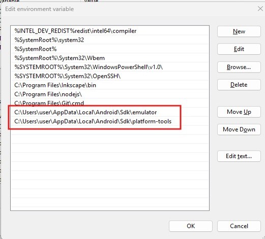 - Click New and add these paths one by one