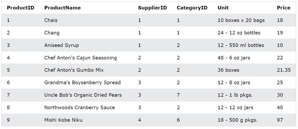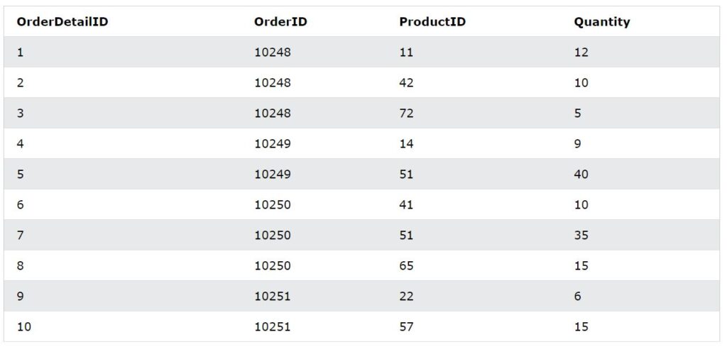 WHERE ProductID = ALL (SELECT ProductID FROM OrderDetails WHERE Quantity = 10);