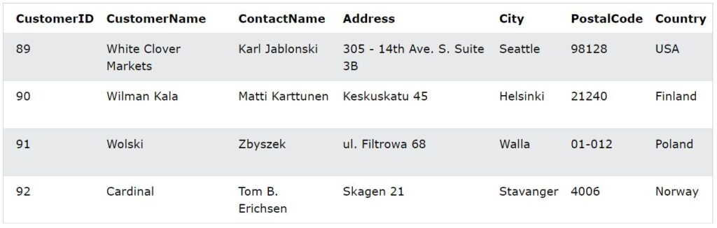 INSERT INTO Customers (CustomerName, ContactName, Address, City, PostalCode, Country)
