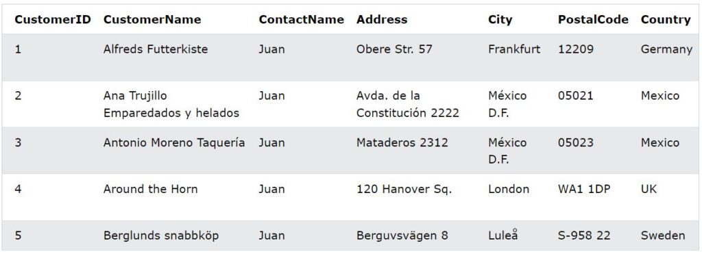 SET ContactName='Juan';
