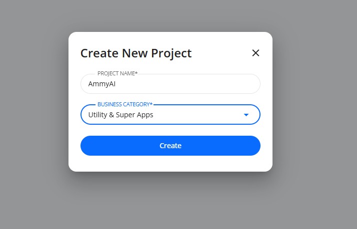 Step-3: Enter the project name and select the business category from the dropdown menu. This will create a new project.