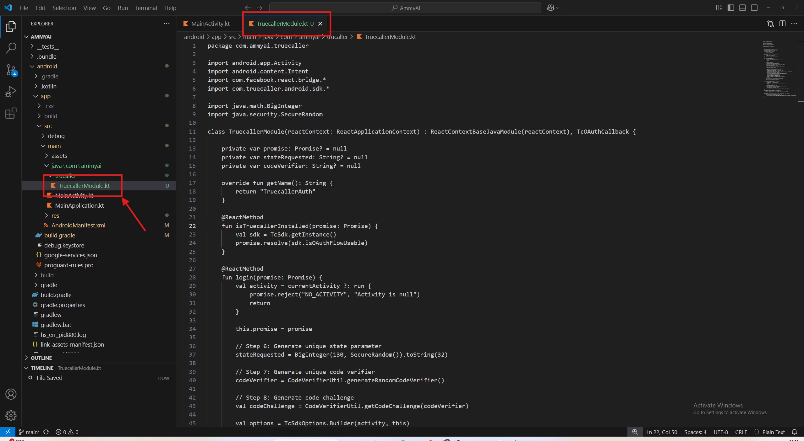 - As Truecaller SDK is written in Kotlin language, to implement or to access the TrueCaller Modules we need to create a Custom Native module and this module will access the TrueCaller SDK functionality.