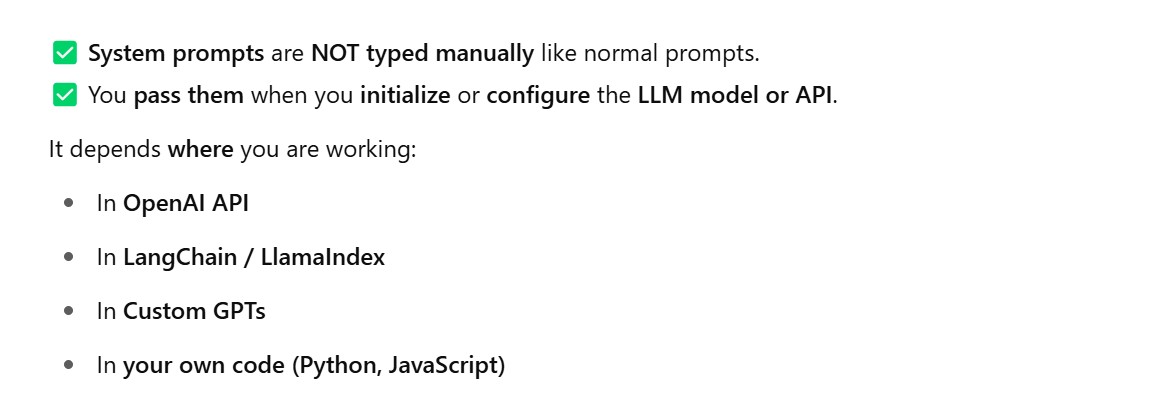 (2) In LangChain : LangChain has special SystemMessagePromptTemplate.